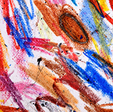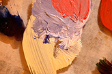 Studio is pristine from wall-to-wall. An empty lacquered palette hangs above the door saying “hello” to the beginning, and “I’ll see you later” at the end. Pigments arranged in regimental rows. Crayon sticks corralled into a box, colors ripe for picking. Studio is quiet and serene. Peacefulness is all around. Wax crayons blossom into swirls and strokes practiced on a palette that comes to life before images are born on canvas. Blank spaces are as important as the painting, lending power to his vision. Oils on a glass palette intrigues. Pigments seem to hover above just asking to be mixed and used for heartfelt purpose. Swirls of oils seem to begin their flight to canvas well before it is gently stroked on the surface for which it is intended. Select an image to enlarge. |