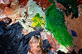 It begins with a blank canvas with an unknown image. Art channeled from multicolored oils in paper bowls onto a surface begging to be covered and converted. Kaleidoscope of brilliant blue, green, yellow cannot compete with white: for it is where color is not placed that art resides. Never knowing ahead of time what is to be painted, ideas metamorphose onto canvas and flow freely from eye to brush, from palette to canvas. Select an image to enlarge. |